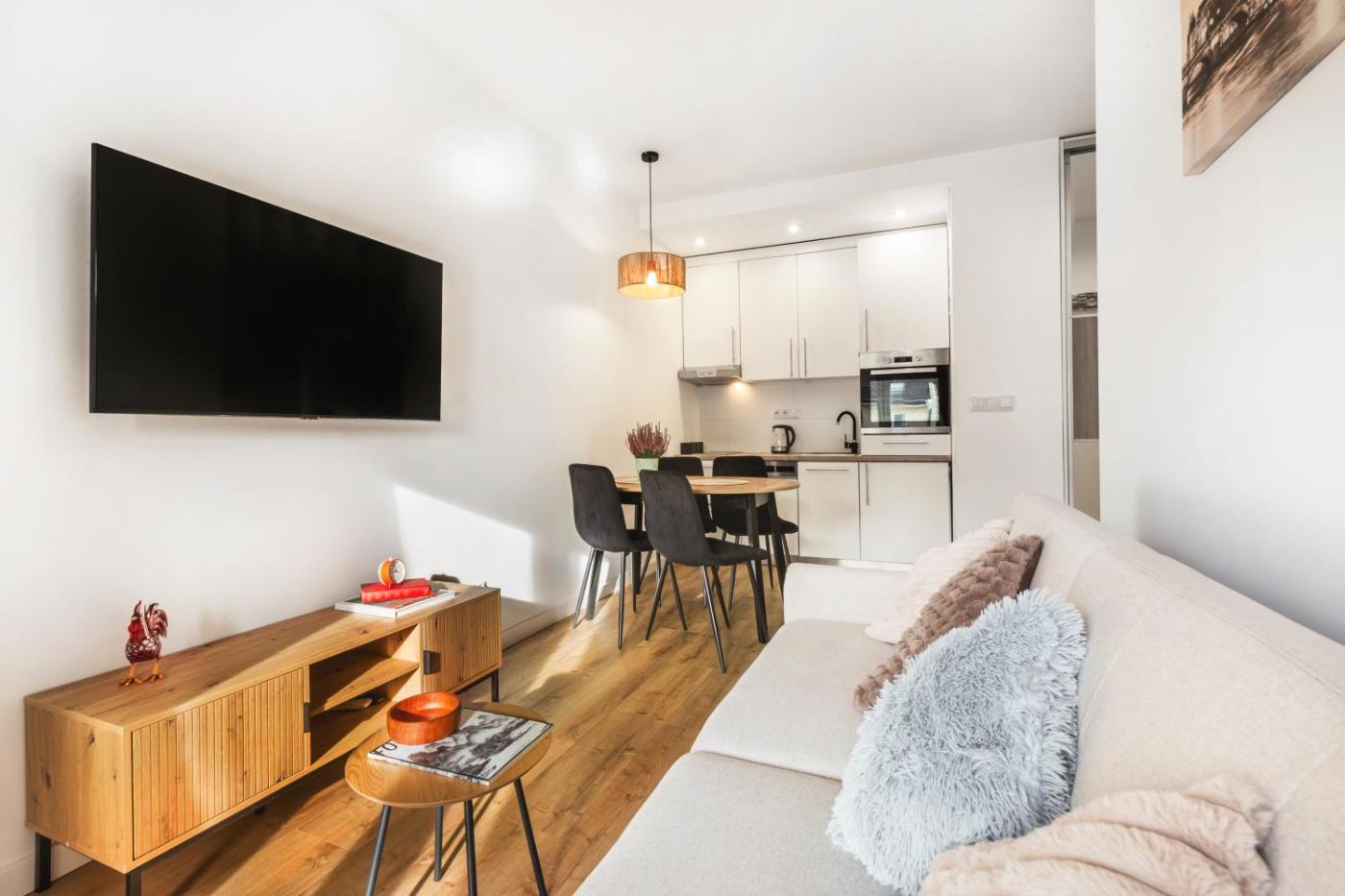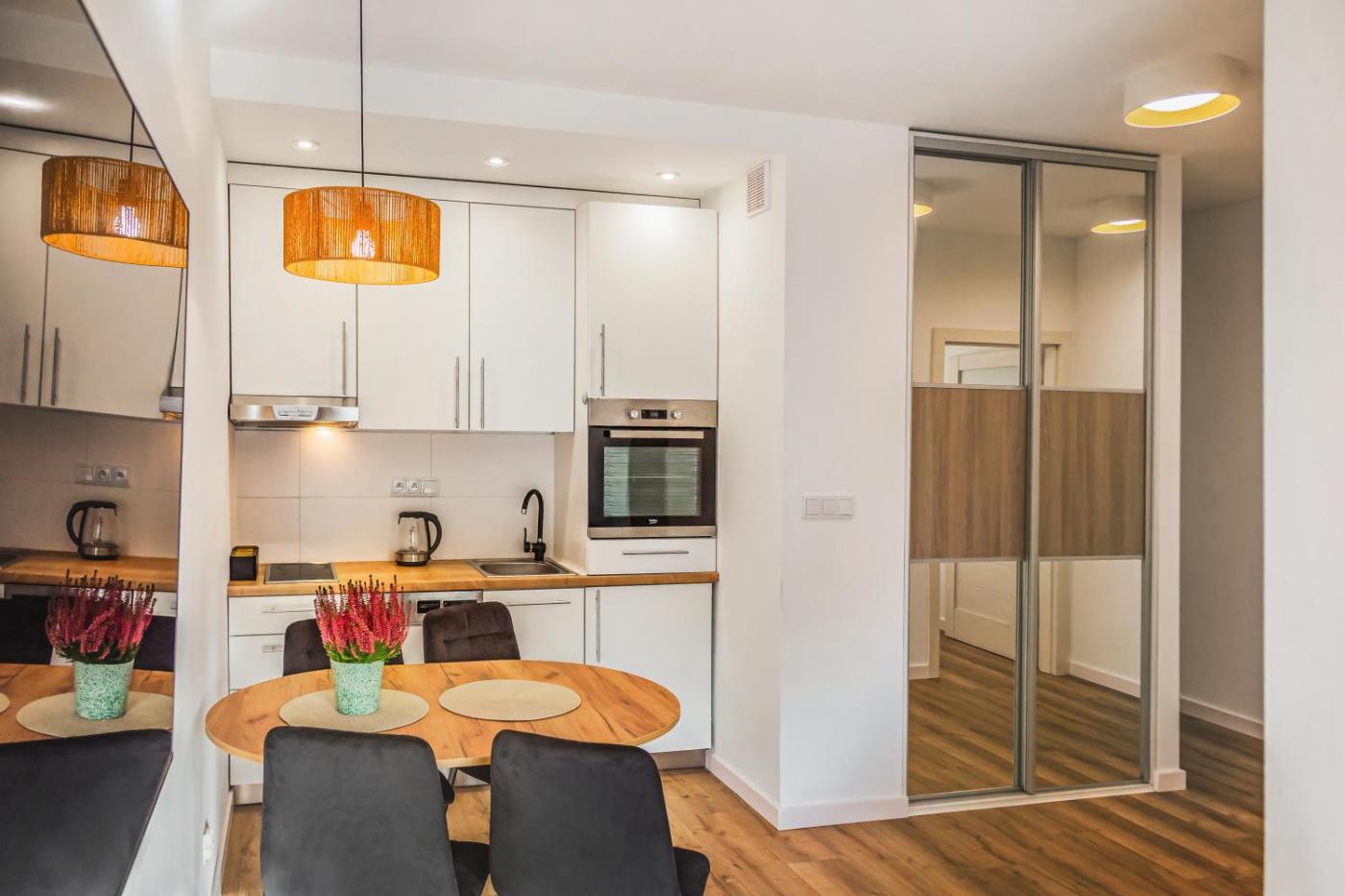 Apartament z 1 sypialnią. Featuring a private entrance, this air-conditioned apartment is comprised of 1 living room, 1 separate bedroom and 1 bathroom with a bath and a hairdryer. The well-equipped kitchen features a stovetop, a refrigerator, a dishwasher and kitchenware. Boasting a terrace with city views, this apartment also offers a washing machine and a flat-screen TV. The unit offers 2 beds. Powierzchnia pokoju ok.: 40 mkw.